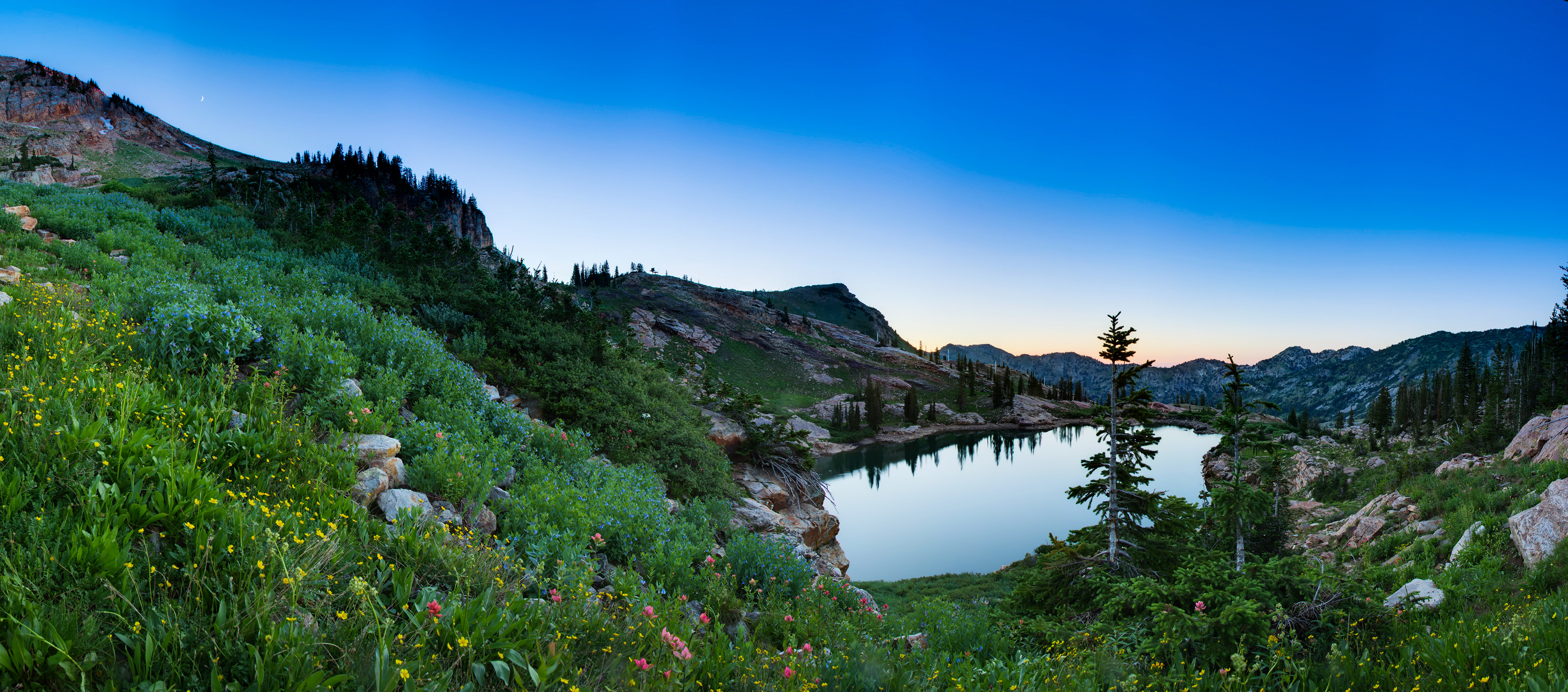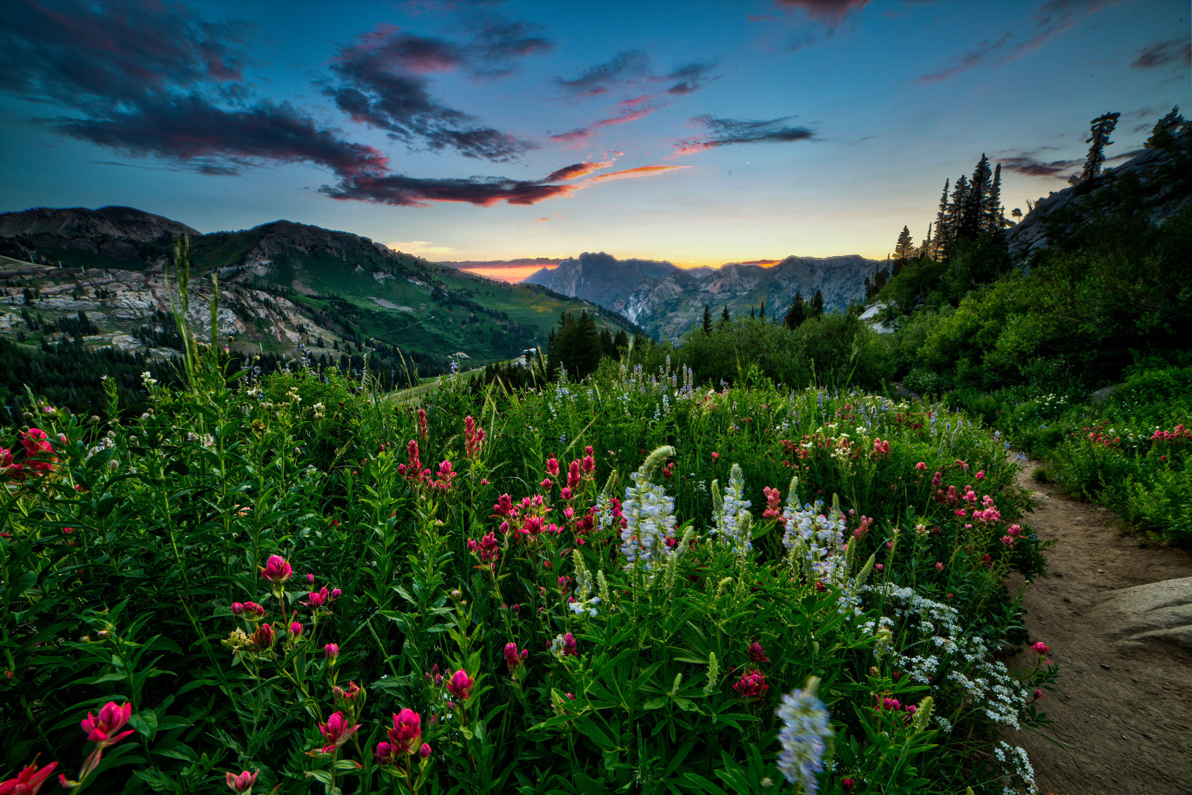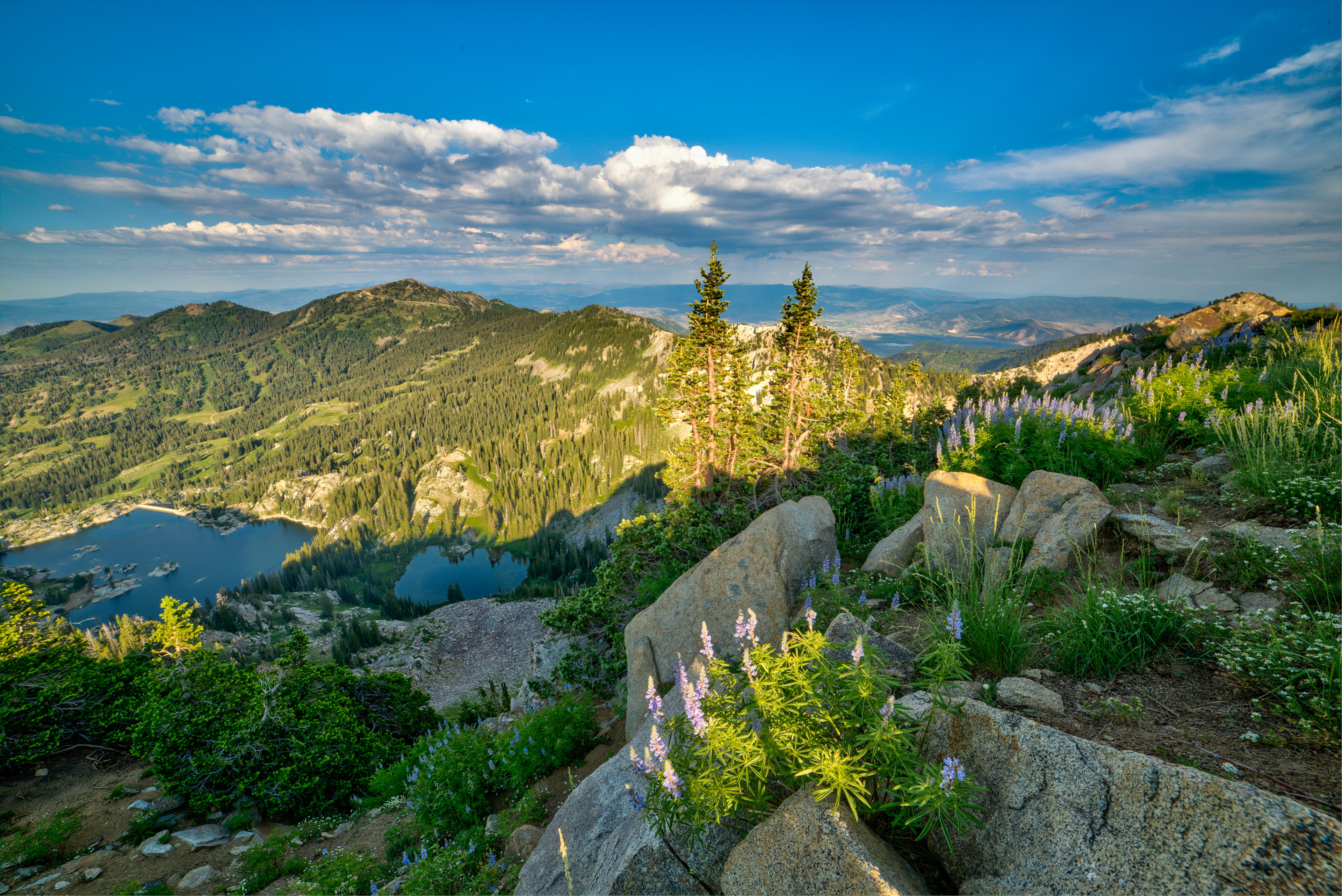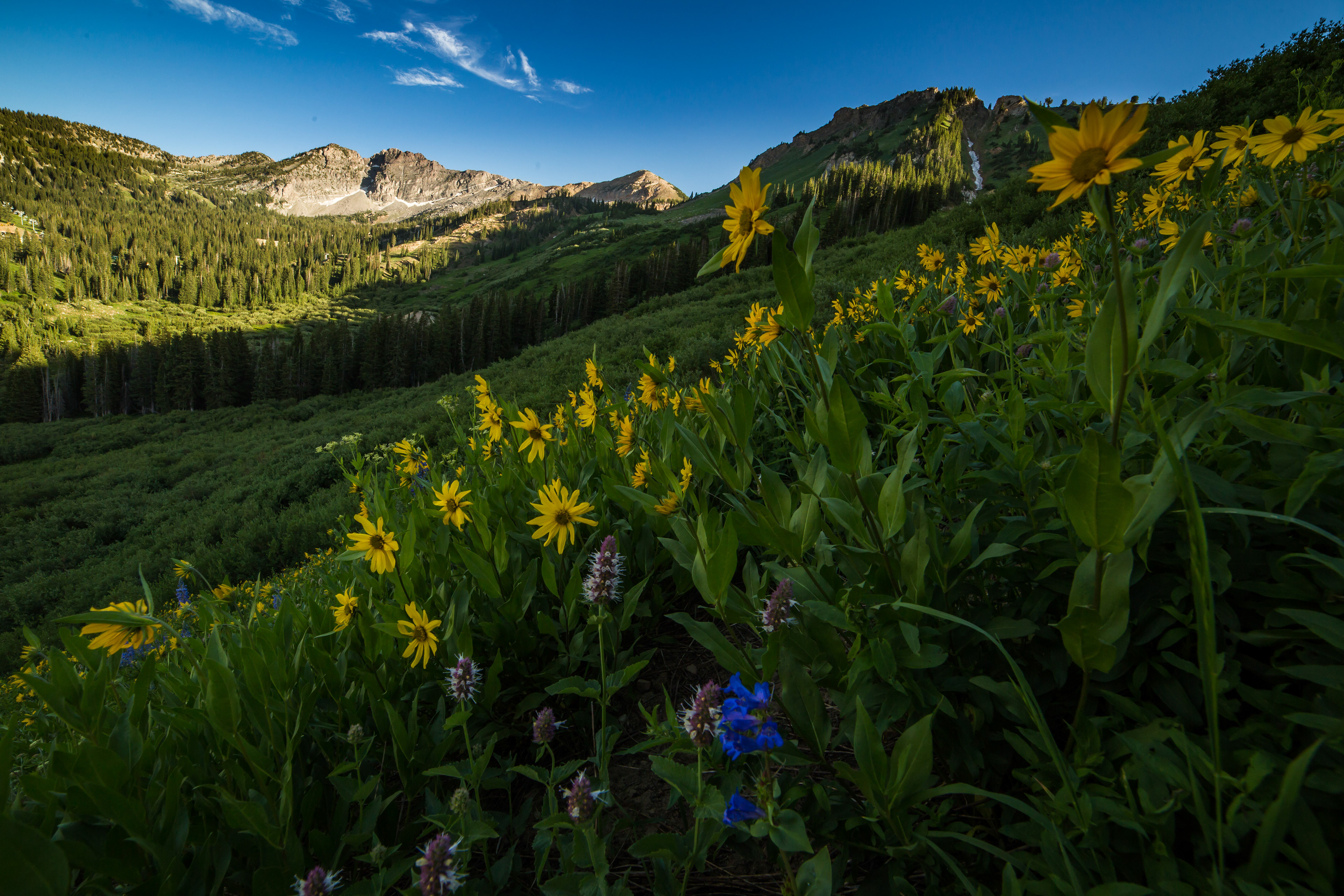 At the top of Little Cottonwood Canyon is Alta ski resort, complete with many wildflowers, several lakes like Cecret lake and Lake Mary, as well as Devils Castle and Sunset Peaks.
